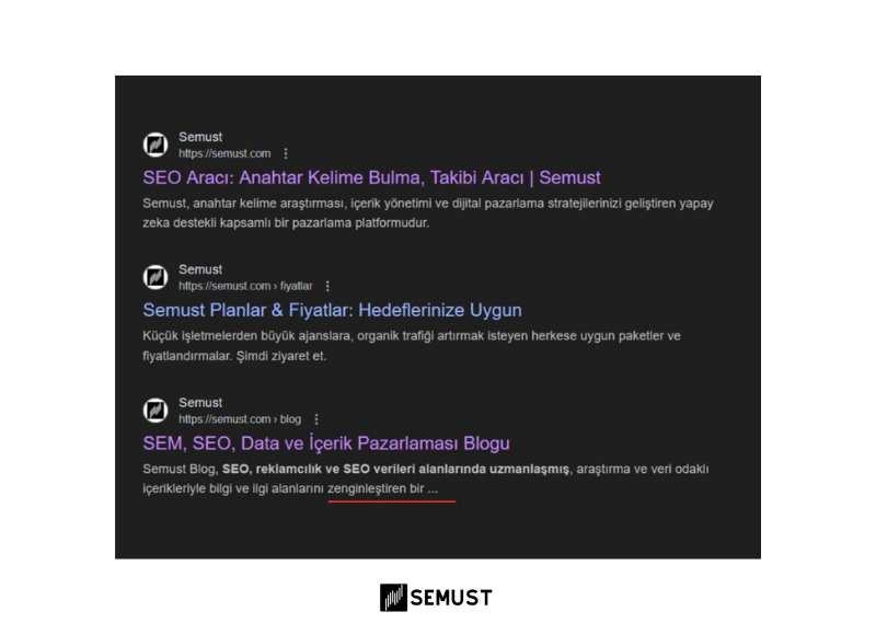 Bütün SEO sürecinizi tek bir platformla yönetmek için Semust SEO platformuna ücretsiz üye olabilirsiniz. Dilerseniz organik trafiğinizi arttırmak için bu rehberi okumaya devam edebilirsiniz.